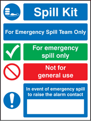 Spill kit emergency spill team only sign